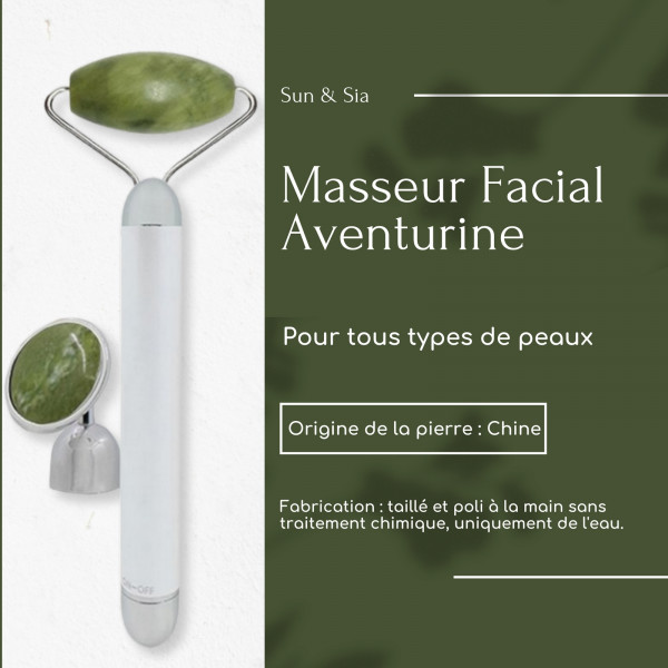 Masseur Visage Electrique en pierre Aventurine naturelle, pour allier la lithothérapie à votre routine de beauté!